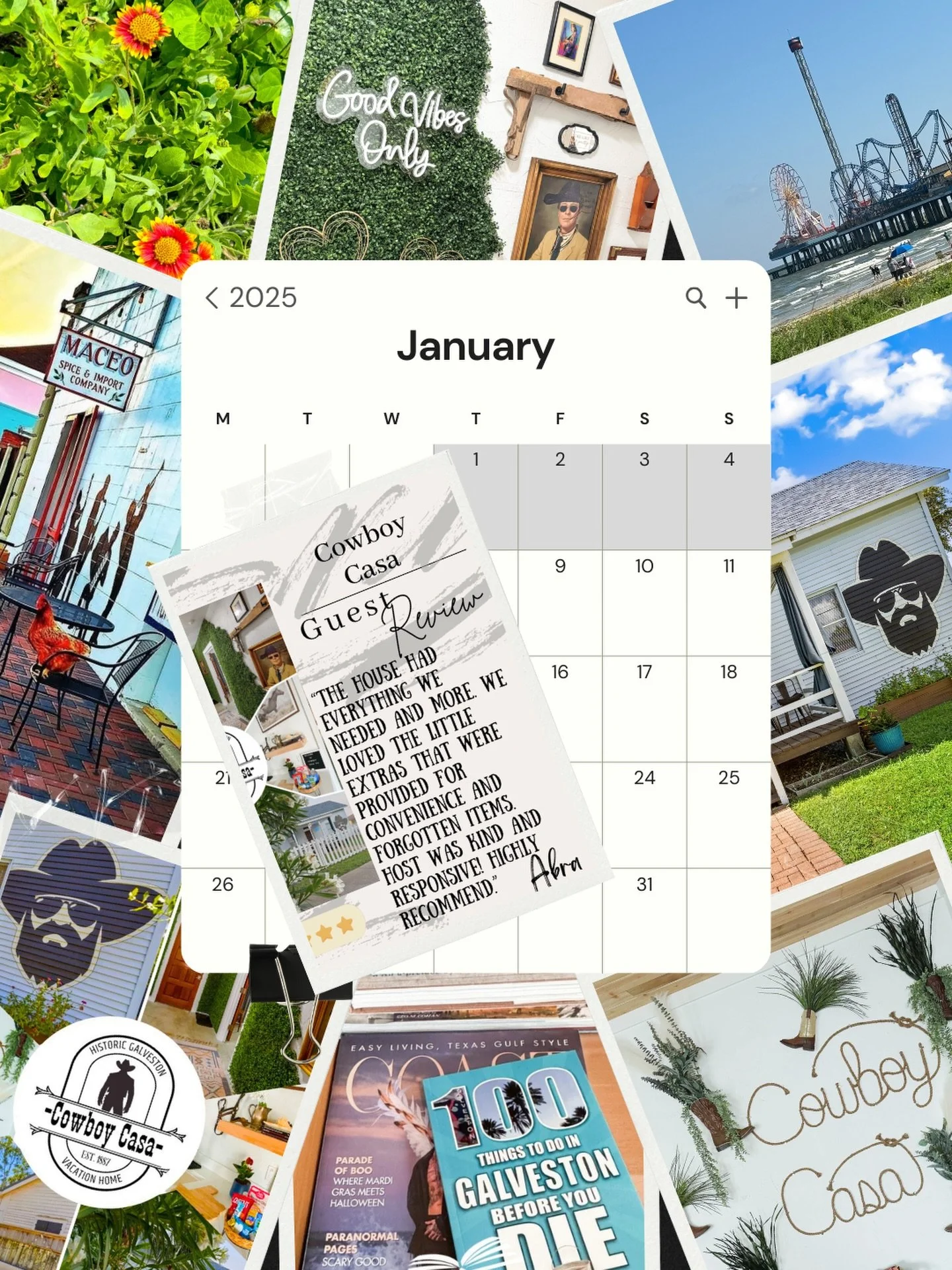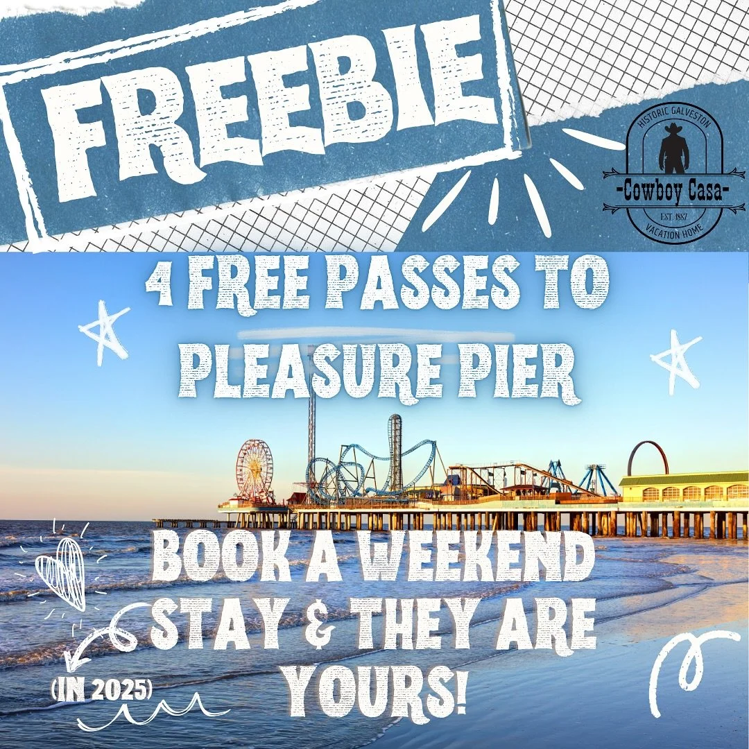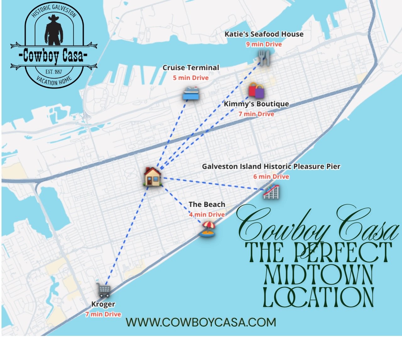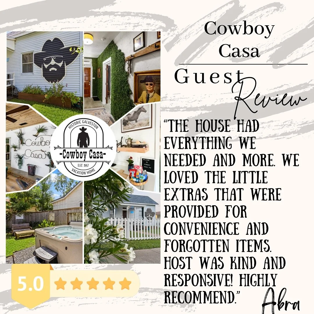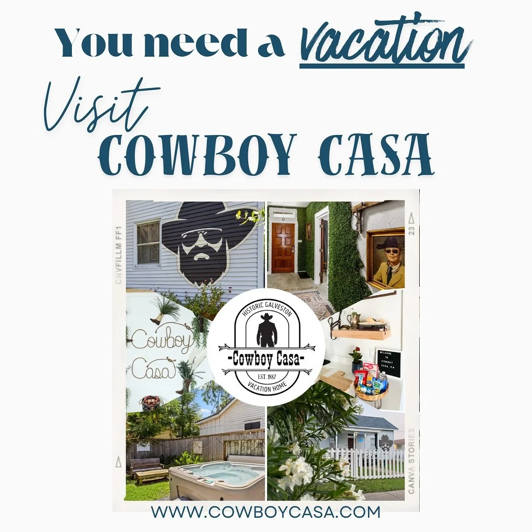 Howdy! Cowboy Casa is the most eclectic Cowboy themed vacation home in Texas! Built in 1887 and surviving The Storm of 1900, this historic home boasts amenities and modern conveniences to please any cowboy or cowgirl. Located just 2 minutes from the Seawall and 7 minutes to the Cruise Terminal, it's in the perfect midtown location is close to all the fun Galveston has to offer. This thoughtfully curated 3 bedroom 2 bathroom home offers a private backyard oasis with hot tub, BBQ grill, life size yard games and has the perfect place to watch the beautiful Texas sunsets. Our guests enjoy our southern hospitality and we are proud to be a guest favorite, SuperHost and have all 5 star reviews. Visit our website to learn more and book your next vacation at Cowboy Casa today!